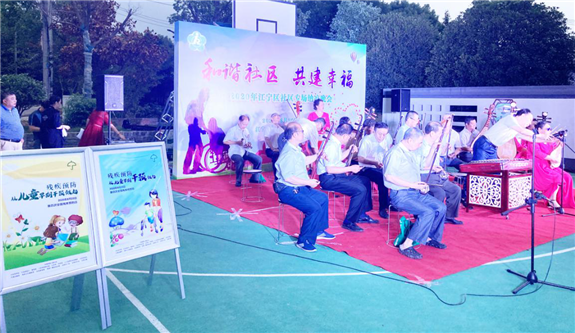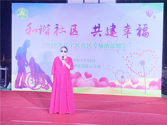 云臺村聯(lián)系江寧區(qū)殘疾人文化藝術(shù)團(tuán),結(jié)合納涼晚會,以殘疾人群體性文化形式傳播殘疾兒童早期預(yù)防和殘疾預(yù)防知識,寓教于樂中強(qiáng)化群眾殘疾預(yù)防意識。