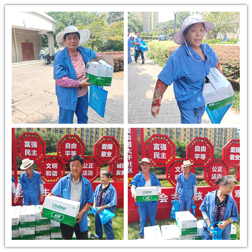 活動(dòng)中,黨員志愿者們?yōu)榄h(huán)衛(wèi)保潔人員送去了一箱箱純凈水,附近的戶外工作者聽聞社區(qū)發(fā)放純凈水,爭先恐后地向發(fā)放點(diǎn)趕來,都想要喝一瓶清爽可口的純凈水解解暑,不一會(huì)兒,整箱的純凈水就見底了,看著戶外工作者滿滿的幸福溢于言表,黨員志愿者們也頓感涼爽了許多,一瓶瓶普普通通的純凈水換來了一張張清甜的笑容,令人沁人心脾。環(huán)衛(wèi)工人劉師傅接過志愿者手中的純凈水,酣暢淋漓地豪飲了一番,一瓶下肚,又續(xù)一瓶,還不時(shí)地向志愿者感嘆道:“真好喝,社區(qū)領(lǐng)導(dǎo)太會(huì)為我們著想了,生活在太平社區(qū)真幸福啊!”