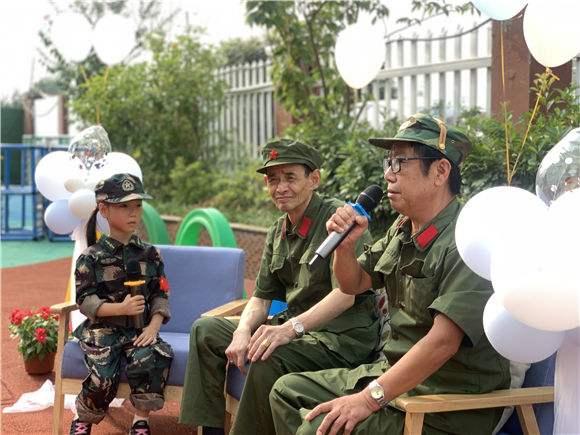 老兵爺爺為孩子們講述他們的光輝過往,在即將成為小小兵的孩子內心中掀起了波浪。孫家社區(qū)退伍老兵陳光保講述了他當兵時有趣的事情,講起當年的軍營生活,老兵的臉上仍然帶著自豪,與戰(zhàn)友一年一次的團圓餃子宴,大家一起動手和面、調陷,包餃子,算是軍營生活的一刻輕松。老兵爺爺告訴孩子們,今天的美好生活是因為仍有許多的軍人叔叔在替我們負重前行,他們是我們美好生活的守護者,你們有幸生在新時代,也將承擔起新時代的歷史使命,愿你們帶上自信的笑容,為明天的美好讀書,為夢想而努力,加油。