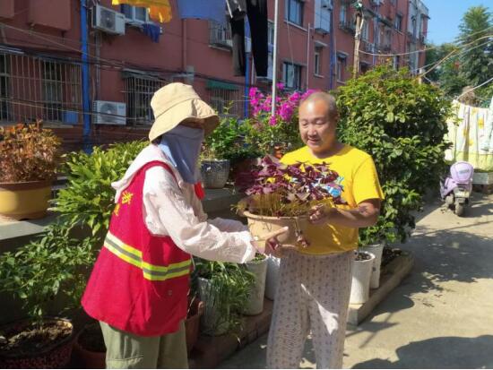 小小鮮花,凝聚大愛?;顒忧埃姶缮鐓^(qū)志愿者首先在社區(qū)微信群中發(fā)布了信息,通過發(fā)動轄區(qū)退役軍人捐花獻草,美化小區(qū),來扮靚社區(qū)環(huán)境。活動期間,退役軍人及家屬積極捐出自家養(yǎng)的最好的盆栽,紅的、黃的、綠的,大家小心翼翼的端出自家的盆栽交到志愿者的手中,并表示會同發(fā)展,共進退,繼續(xù)精心養(yǎng)護這些植物,凈化社區(qū)空氣,美化社區(qū)環(huán)境,為小區(qū)黨建微花園盡自己的一份力,努力讓社區(qū)變得更綠、更美、更溫馨。