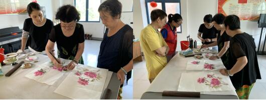 有愛,更有溫度。此次活動中,邵圣社區(qū)明月港灣沐方軒畫室桑義芳老師帶領(lǐng)大家提升牡丹畫法,首先為大家講解畫筆的調(diào)色,如何通過色彩的濃淡變化,刻畫畫面的遠近、虛實關(guān)系,采取不同筆法的運用處理,突出花朵的層次,從整個畫面的謀篇布局,到具體細節(jié)的細致處理。隨后,在老師的指導(dǎo)下,老學(xué)員們紛紛上手,在紙張上用心刻畫出自己理解和對繪畫知識的掌握,經(jīng)過上學(xué)期的入門學(xué)習(xí),這學(xué)期的提升課大家已經(jīng)熟練了很多,不一會一幅幅栩栩如生的畫便展現(xiàn)在大家面前,桑老師逐一點評并點出問題和優(yōu)化方案,有時會直接幫助大家就行優(yōu)化補充,果然優(yōu)化后的牡丹花更飽滿更生動。
