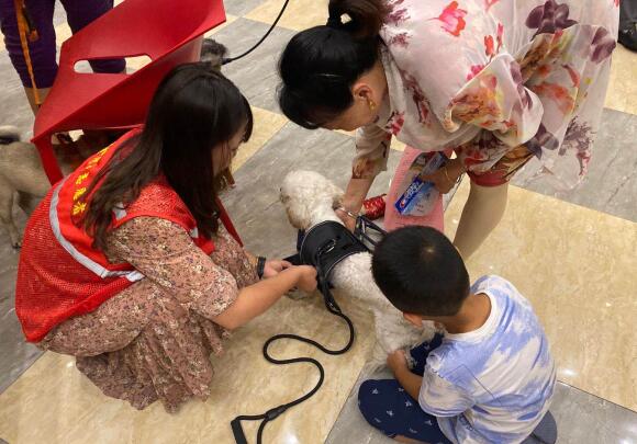 黨員志愿者提前準(zhǔn)備了文明養(yǎng)犬宣傳冊、倡議書,還為居民準(zhǔn)備了遛狗繩、狗毛梳等小禮品。傍晚時(shí)分,出門遛狗散步的居民多了起來,活動現(xiàn)場也熱鬧了起來。黨員志愿者向居民發(fā)放了宣傳冊,倡導(dǎo)居民依法養(yǎng)犬、安全養(yǎng)犬、衛(wèi)生養(yǎng)犬、文明養(yǎng)犬,與居民進(jìn)行了養(yǎng)犬的互動與交流,引導(dǎo)居民填寫了文明城市調(diào)查問卷、并征集文明城市創(chuàng)建過程中的居民意見。居民們在黨員志愿者的引導(dǎo)下登記了寵物信息,并領(lǐng)取了小禮品。“這個(gè)繩子太酷了,像警犬的繩子一樣。”“這個(gè)衣服挺好看的,寬松,不會勒著狗。”“這狗繩上還有反光條,夜間遛狗安全多了。”志愿者為狗狗們穿戴上遛狗繩,居民們紛紛表示滿意和支持。