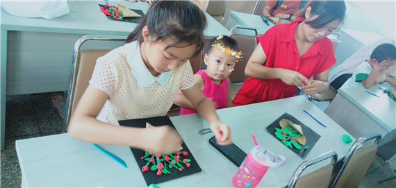 接著凌老師把準(zhǔn)備好的輕質(zhì)黏土、硬紙板以及工具分發(fā)給大家,閆格和笪梓悅小朋友主動(dòng)做起了老師的小助手,有序地把材料發(fā)到每位小朋友手中。老師按步驟介紹了制作過(guò)程,講解了制作中的注意事項(xiàng),家長(zhǎng)們和小朋友雙手搓著粘土做著樹(shù)枝做著樹(shù)葉做著玫瑰花,也有各思奇想創(chuàng)作起來(lái)。在陸續(xù)地完成了自己的手工作品,孩子們帶著自己的作品自信互相分享著自己的成果。