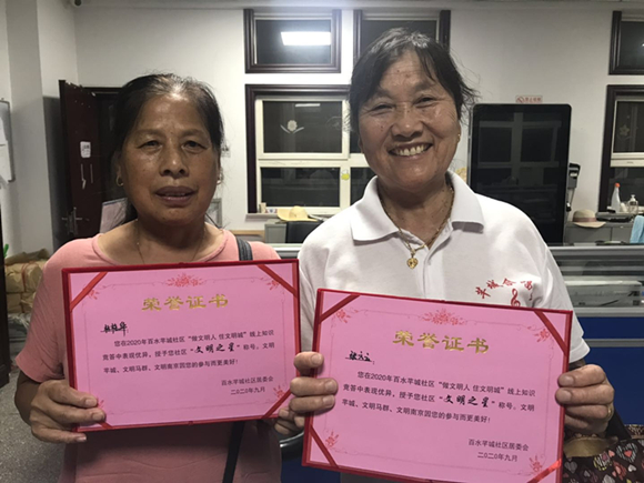活動吸引了近80名社區(qū)居民參加,最終有五名社區(qū)居民以滿分拔得頭籌,獲封社區(qū)“文明之星”稱號。百水芊城社區(qū)今后也將繼續(xù)舉辦豐富多樣的活動,讓文明之風吹進千家萬戶。(馬賢琳)