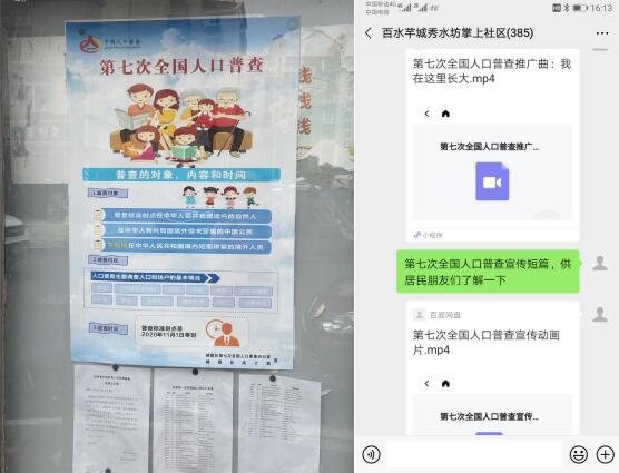 人口普查,惠及萬家。此次活動中,百水芊城社區(qū)工作人員首先在宣傳欄粘貼宣傳海報,使居民初步了解人口普查工作的開展時間、普查的對象及居民需要配合提供的信息。并且借助網(wǎng)格員入戶的契機(jī),向小區(qū)居民宣傳人口普查工作的意義,初步確認(rèn)小區(qū)居民居家時間,以方便后期普查員入戶。同時社區(qū)還運用“掌上云”,在小區(qū)居民微信群里,不定期推送人口普查宣傳短片,努力將人口普查工作融入到小區(qū)居民生活中,提升小區(qū)居民的了解度,以提高小區(qū)居民后期的配合度。