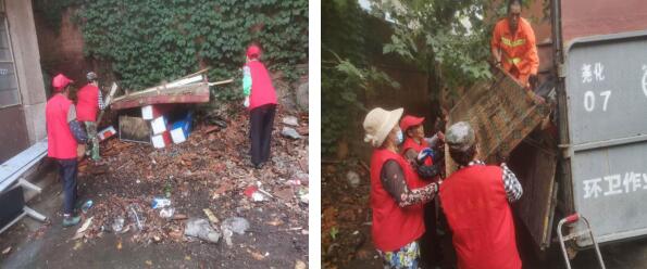 堯化社區(qū)時間銀行志愿者有一批“紅色娘子軍”,長期從事網(wǎng)格巡查、環(huán)境治理等工作,形成吃苦耐勞的團隊性格。近日,堯化社區(qū)10多位時間銀行志愿者帶著掃把、垃圾袋、鐵鍬等“作戰(zhàn)工具”,來到103號小區(qū)“報到”。103號小區(qū)是江蘇省煤田地質(zhì)物測隊職工宿舍,屬無物業(yè)小區(qū),時間銀行志愿者在網(wǎng)格巡查時發(fā)現(xiàn)小區(qū)內(nèi)有兩處頑疾,一處為垃圾池堆放垃圾長時間無人清理,另一處為退休老人長期私占廣場,搭建約30平方米違建。發(fā)現(xiàn)問題后,志愿者們立即行動,經(jīng)過1個多小時的努力,將職工宿舍垃圾池垃圾清理干凈;同時配合城管隊員拆除違建,合力清除頑疾,保障居民生活質(zhì)量,打造舒適、干凈、宜居的小區(qū)居住環(huán)境。