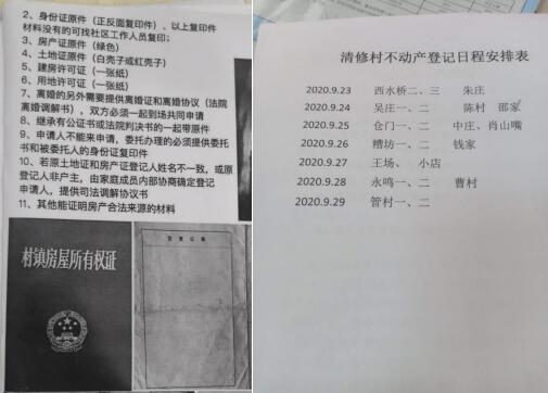 據(jù)清修村工作人員介紹,此次登記工作受理時(shí)間從9月23日至9月29日,登記區(qū)域包括清修村所有農(nóng)村集體建設(shè)用地,宅基地及宗地內(nèi)的地上房屋等建筑物,同時(shí)提醒村民辦理當(dāng)天一定要把相關(guān)材料帶齊帶全。