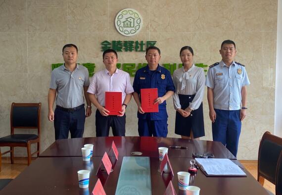 隨后,金陵驛社區(qū)黨支部書記賈錦龍與南京市消防救援支隊棲霞消防大隊黨支部書記王飛簽訂黨建共建協(xié)議。馬群街道工委副書記陳硯墨、棲霞消防大隊黨委書記翟飛、參謀尹繼升、中花崗消防站負(fù)責(zé)人徐濤以及金陵驛社區(qū)黨支部副書記薛忠琴共同見證。