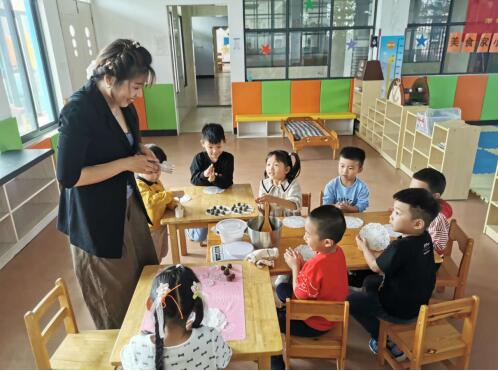 孩子們把自己制作的月餅高高舉起。“看,我做的月餅圓吧!”“老師,我的月餅可香了!”師幼齊努力,香噴噴的月餅出爐了!每一個月餅都揉進師幼之情,滋味別樣的好!