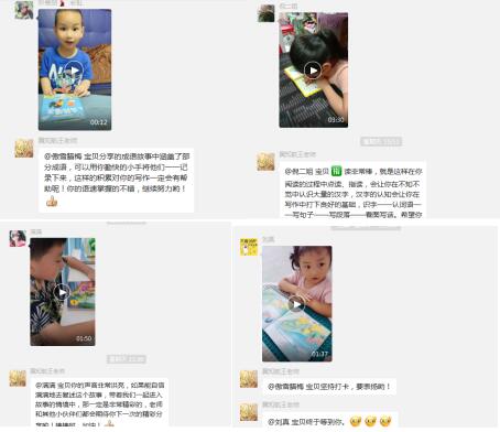 親子閱讀,老師傳授閱讀方法并且每日在微信群里打卡閱讀,老師進行點評。以這樣的方式在提高閱讀能力的同時也培養(yǎng)了好的閱讀習慣。