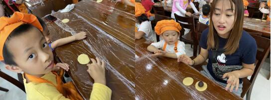 活動(dòng)中,志愿者老師通過(guò)講述神話故事和圖片欣賞的方式,向小朋友們講解中秋節(jié)的由來(lái)及風(fēng)俗習(xí)慣。隨后,萬(wàn)眾期待的做月餅環(huán)節(jié)終于開(kāi)始了,志愿者老師簡(jiǎn)單介紹了制作月餅的材料和步驟,孩子們戴好一次性手套,開(kāi)始自己動(dòng)手制作。和面、壓皮、包餡,最后放進(jìn)模具里定型,每個(gè)步驟有條不紊,大家在制作過(guò)程中有說(shuō)有笑,現(xiàn)場(chǎng)氣氛十分活躍,歡聲笑語(yǔ)樂(lè)不停。