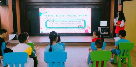 在互動環(huán)節(jié)中,志愿者們鼓勵孩子們,走上講臺,講出自己對《三字經(jīng)》中每一小段的理解。小朋友們表現(xiàn)的很棒,他們通過平時在學校以及生活中積累的知識,都表達出了自己的對《三字經(jīng)》的見解。