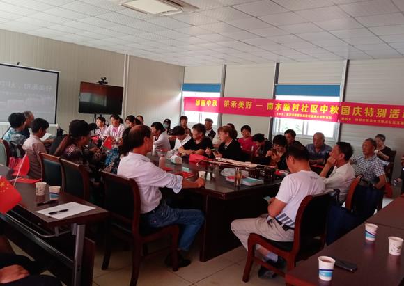 活動(dòng)開始,南水新村社區(qū)的丁宗明書記首先為居民送上了喜迎國(guó)慶,歡度中秋的祝福,然后發(fā)言慶祝中華人民共和國(guó)成立71周年,憶崢嶸歲月、話美好未來(lái),感受中華人民共和國(guó)成立和發(fā)展的艱辛歷程,感受中國(guó)共產(chǎn)黨的初心和使命,珍惜來(lái)之不易的美好生活,激發(fā)了居民愛國(guó)愛家的熱情。