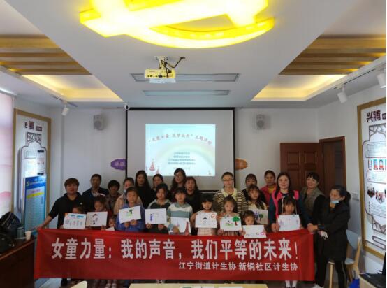 為了進(jìn)一步宣傳國際女童日,提高女童的社會地位,促進(jìn)出生人口性別比自然平衡,創(chuàng)造有利于女童成長成才的社會環(huán)境,10月11號上午,南京市江寧區(qū)江寧街道計生協(xié)聯(lián)合新銅社區(qū)計生協(xié)在社區(qū)未成年人活動室開展“我的聲音,我們平等的未來”國際女童日主題活動,呼吁轄區(qū)更多的普通家庭關(guān)注女童發(fā)展,促進(jìn)女童保護(hù)意識。