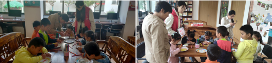 活動伊始,志愿者老師耐心地為前來參加活動的孩子進行作業(yè)輔導,嚴格地監(jiān)督孩子們完成作業(yè)后,又詳細講解了此次手工制作具體流程和制作要點,孩子們可以根據(jù)自己的洗好選擇畫筆和材料顏色,在餐盤上勾勒出各式各樣的花紋,在老師的指導下,孩子們用稚嫩的小手任意捏弄色彩繽紛的彩泥,不一會功夫,一塊塊別致的“重陽糕”展現(xiàn)在眼前,平添了幾分趣意?;顒咏Y束,孩子們紛紛表示要將手工作品帶回家給爺爺奶奶,以表心意。
