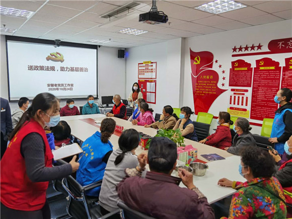開展送政策法規(guī),助力基層善治。與共建單位南京郵政堯化門黨支部開展共建活動(dòng),送政策法規(guī),助力基層善治,邀請(qǐng)南京郵政堯化支行的行長(zhǎng)章行長(zhǎng)為轄區(qū)的居民、退休職工進(jìn)行反詐騙知識(shí)的宣傳,與會(huì)居民紛紛表示受益匪淺,此次活動(dòng)宣傳力爭(zhēng)使居民做到人人知曉,人人防范,從思想上提高警惕,防止詐騙在社區(qū)居民身上發(fā)生,共同構(gòu)筑起防范詐騙的自身防線!