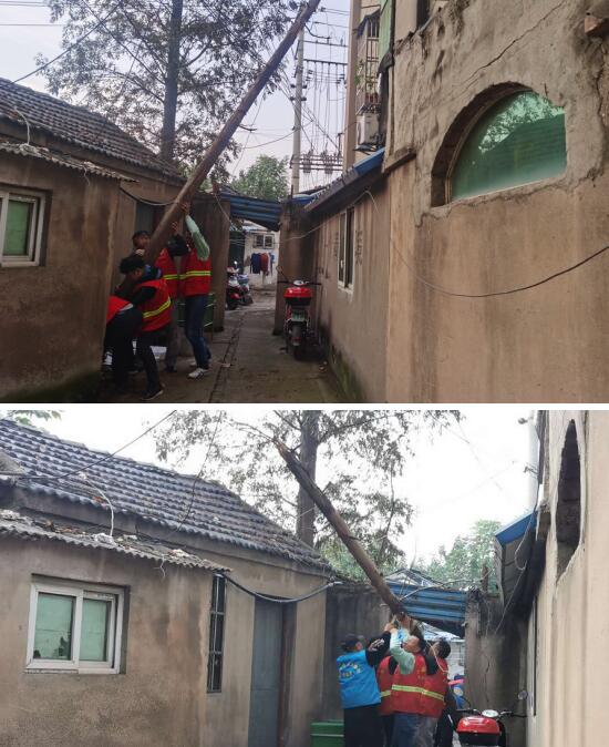 由于巷子狹窄,機(jī)械車輛進(jìn)不來,安全員和志愿者們經(jīng)過協(xié)商后,制定了有效處理方案。大家分工合作,在不采用機(jī)械的情況下,勁往一處使,砍、抱、托、拉、拽,大家合力將這棵高達(dá)9米左右的倒伏樹木放倒、鋸段、清運(yùn),并對(duì)該棟房屋周邊亂扔雜物一并進(jìn)行了清理,期間未損壞任何物品。周邊居民紛紛表示:團(tuán)結(jié)力量大,社區(qū)真的是在用心為居民辦好事、辦實(shí)事。