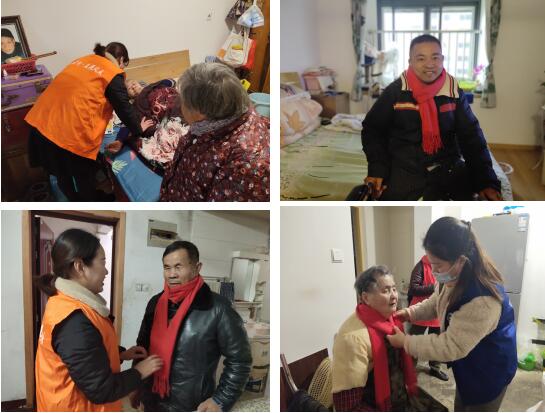 工作人員與殘疾老人親切交談,噓寒問暖,詳細(xì)詢問他們的生活狀況,鼓勵他們要有自強不息,對生活充滿希望,平日多出門走動,多參加火炬村舉辦的社區(qū)活動,有助于康復(fù),有什么困難及時向火炬村提出來,火炬村會盡力解決。特別是一條簡單的圍巾系在了他們的脖子上,無“圍”不至的關(guān)懷,讓這個冬天不太冷。