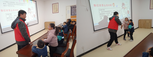 活動中,志愿者利用生動鮮活的案例,呼吁大家提高防拐防騙意識,并從孩子、父母、教師三個層面分析,采取豐富多樣的問答形式,從“如何有危險找警察”、“報警電話的使用”、“如何防范拐騙”等方面為在場的20余名幼兒園小朋友上了一堂生動、有趣的安全教育課。同時以模擬情景、互動游戲等方式,充分調(diào)動小朋友積極參與,在和諧、歡樂的氛圍中,將法制安全意識灌輸?shù)叫∨笥训哪X海中。