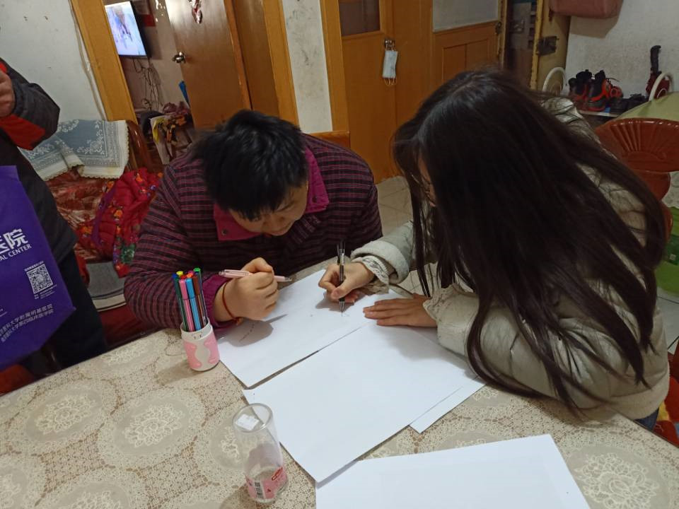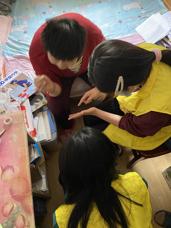 林姑娘,興達(dá)社區(qū)智力殘障居民,年齡26歲。林媽媽一直有一個(gè)心愿,希望自己的女兒能夠與同齡人進(jìn)行一些互動和交流,社區(qū)范書記得知此情況后聯(lián)合“愛在屋檐下”項(xiàng)目組積極對接了南京師范大學(xué)馬克思學(xué)院的志愿者們結(jié)合林倩的特殊情況制定了一系列陪伴計(jì)劃,學(xué)習(xí)、畫畫、做手工……每到周末,志愿者的準(zhǔn)時(shí)陪伴讓林倩的生活充滿了陽光。
