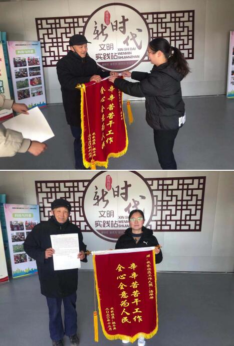 見到老人上門送錦旗,湯萍萍顯得受寵若驚,面對(duì)老人的交口稱贊,她露出了靦腆的笑容,連聲說是自己份內(nèi)的事,只要老人們的事得到順利的解決,便是對(duì)自己工作最好的肯定。