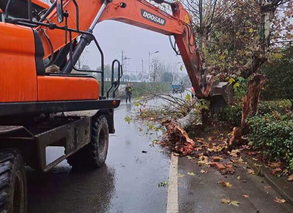 為保障道路車輛的安全通行和群眾出行安全,社區(qū)接到報告后,組織社區(qū)志愿者們第一時間趕到了事故現(xiàn)場,并在周邊放置了安全錐進(jìn)行隔離,同時,一一提醒過往車輛注意安全,防止發(fā)生次生事故。隨后叫來挖機(jī)對倒伏樹木進(jìn)行清移,再由工作人員及時清掃道路上的殘余樹枝、樹葉。經(jīng)過半個小時的清理,路面恢復(fù)了暢通,及時消除了安全隱患。