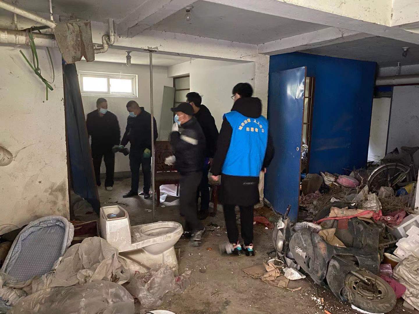 清理時,工作人員先對社區(qū)里每棟樓的地下室進(jìn)行逐一排查,對堆積在地下室的物品和居民丟棄的廢品統(tǒng)一用垃圾車清理干凈,確保樓道地下室無雜物。然后在確保工作環(huán)境安全的情況下對違章搭建的鐵皮墻進(jìn)行一一拆除,最終統(tǒng)一處理干凈。