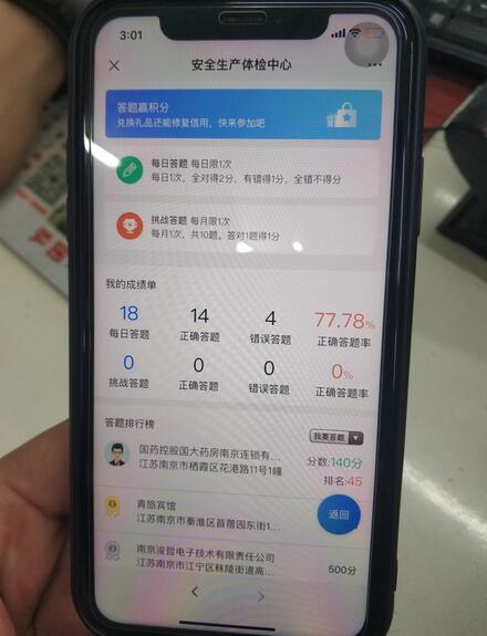 臉譜系統(tǒng)主要由安全自評、月度體檢、我要答題三個部分組成。社區(qū)工作人員走訪商家,指導各單位負責人關注南京應急管理微信公眾號,從互聯(lián)互動窗口完成臉譜系統(tǒng)的注冊,并完成第一次安全自評與參與我要答題。商家通過自查店鋪滅火器,消防栓,煙感報警器等設備的狀況,進行評分,完成安全自評及時發(fā)現(xiàn)店中的安全隱患。我要答題則是讓商家回答一些跟應急管理方面有關的選擇題,無論哪種方式都是為了提高商家安全生產(chǎn)的意識。