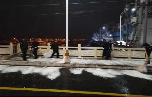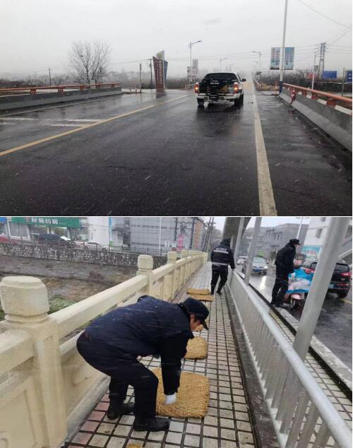 29日下午至夜間,雨雪紛紛,氣溫驟降。執(zhí)法大隊采取“人工+機(jī)械”相結(jié)合的方式,持續(xù)對轄區(qū)內(nèi)主干道、橋梁等重點區(qū)域撒布融雪劑、鋪設(shè)防滑草墊,防止道路結(jié)冰,保障轄區(qū)居民出行安全。