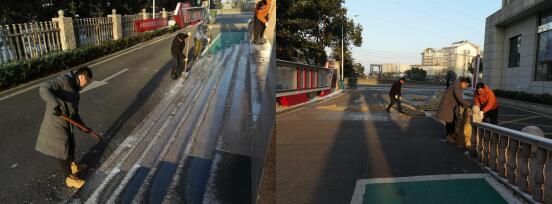 為保證掃雪除冰工作響應(yīng)快速、任務(wù)明確、落實(shí)有力,盛江社區(qū)積極召集黨員群眾奔赴社區(qū)掃雪除冰最前線,備好物資,正式打響掃雪除冰攻堅(jiān)戰(zhàn),以人工除雪、機(jī)械除雪和融雪劑除雪相結(jié)合的方式,對(duì)社區(qū)橋頭、坡路等易滑路段進(jìn)行除雪、撒鹽、鋪防滑草墊,做好防滑措施,實(shí)行降雪即落即掃、不間斷作業(yè)開展掃雪除冰工作,以防過往車輛打滑和人員滑倒受傷,確保“以雪為令、邊下邊掃、雪停路凈”,大家忙碌的身影構(gòu)成了雪后的一道靚麗的風(fēng)景線。