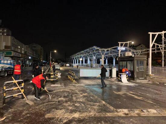 雖然鞋底濕透,臉也凍地通紅,但大家依然毫無怨言,頑強(qiáng)與冰雪戰(zhàn)斗到底,通過共同協(xié)作,全力為社區(qū)居民平安出行保駕護(hù)航。(馬賢琳)