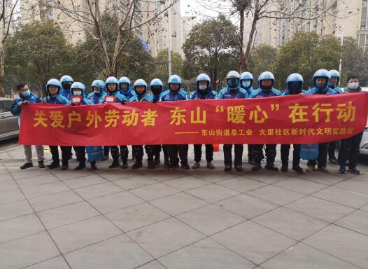 為提高服務(wù)職工精準(zhǔn)化水平,切實(shí)幫助戶(hù)外勞動(dòng)者解決生產(chǎn)生活方面的實(shí)際困難,實(shí)現(xiàn)戶(hù)外為提高服務(wù)職工勞動(dòng)者“體面勞動(dòng)、舒心工作、全面發(fā)展”,2021年1月5日,江寧區(qū)東山街道總工會(huì)、大里社區(qū)新時(shí)代文明實(shí)踐站開(kāi)展以“關(guān)愛(ài)戶(hù)外勞動(dòng)者 東山‘暖心’在行動(dòng)”為主題的活動(dòng),為外賣(mài)小哥、保潔、交警送溫暖。