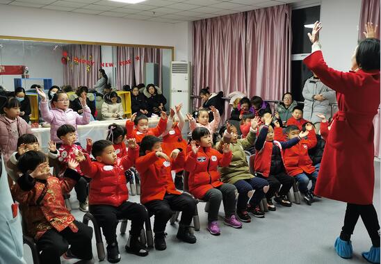 參加活動的小朋友們都穿著紅衣服,有的穿著紅棉襖,有的穿著紅裙子,還有的穿著紅色唐裝,格外喜慶?;顒釉诟枨缎履旰谩分欣_序幕,小朋友們在黨員志愿者的帶領下,隨著音樂律動。志愿者還帶著小朋友們一起誦讀了關于元旦的古代和現(xiàn)代詩歌,教給小朋友們關于元旦的小知識。