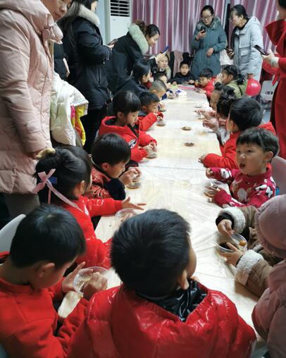 活動現(xiàn)場還為小朋友們準備了湯圓,孩子們一邊吃著湯圓,一邊互相交談著自己的新年愿望,彼此祝福著新年快樂。