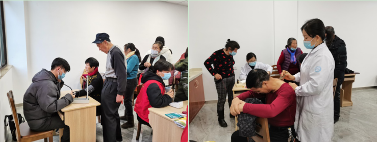 活動(dòng)現(xiàn)場,醫(yī)護(hù)人員為大家制定個(gè)人健康手冊,隨后進(jìn)行血壓、血糖、心肺聽診等常規(guī)檢查,并根據(jù)每個(gè)人不同的健康狀況,從飲食、生活習(xí)慣以及合理用藥等方面給予科學(xué)的指導(dǎo),并耐心講解關(guān)于常見病、多發(fā)病的預(yù)防診治問題,告知定期體檢的重要性。此外,針對居民患有腿疼、腰疼等情況,醫(yī)生們進(jìn)行了現(xiàn)場推拿、刮痧,用中醫(yī)理療緩解居民身體疼痛。嫻熟的技術(shù)和貼心的服務(wù)受到大家的一致好評:“社區(qū)開展惠民義診活動(dòng),給我們帶來了實(shí)實(shí)在在的幫助,身體健康是每個(gè)人的頭等大事。”
