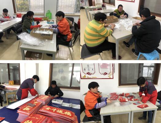 盡管年關(guān)已近,五福家園的殘疾人之家依舊忙碌,剛走進(jìn)里面,遍地的紅色便映入了眼簾。據(jù)了解,五福家園社區(qū)黨委充分調(diào)研市場,精準(zhǔn)對接需求。新年即將到來,市場上春聯(lián)、紅包、新年日歷等需求大增,殘疾人之家專職委員特意引進(jìn)了這些新產(chǎn)品進(jìn)行加工,提高殘疾人收入的同時,更讓精神智力殘疾人一起加入到產(chǎn)品加工中,促進(jìn)了社會殘健融合。紅色的對聯(lián)加上火熱的干事氛圍讓這個殘疾人之家遍布著火紅的基調(diào)。