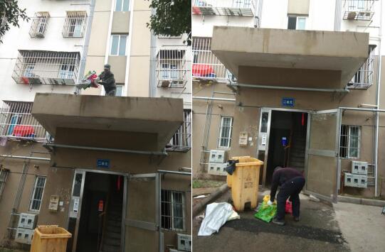 潤(rùn)康苑社區(qū):迎接新春佳節(jié) 清理單元門(mén)頂