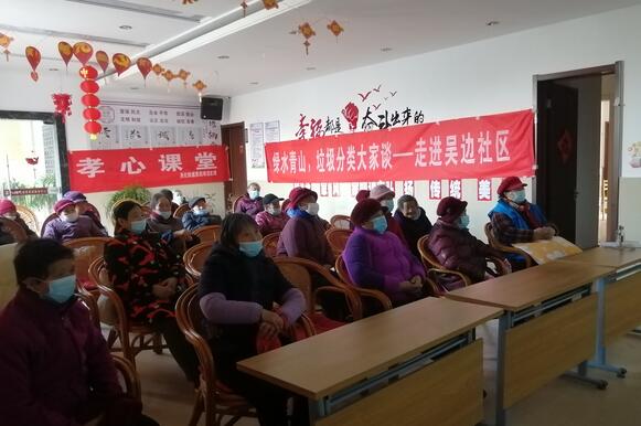 在吳邊社區(qū)居家養(yǎng)老服務(wù)中心,社區(qū)老年人就垃圾分類展開了熱烈的討論。大家各抒己見。社區(qū)賈奶奶最有心得:“我每天早上都把自己家的廚余垃圾送到集中投放點,刷卡兌換積分,每個月還能換不少雞蛋呢!”許奶奶不甘示弱道:“我女兒每天把家中的廢舊紙盒、報紙都分類好,由我每周末送到集中收集點進(jìn)行兌換積分,還換了洗潔精呢。”社區(qū)老年人對垃圾分類都有自己的獨到見解,把自己的做法在會上進(jìn)行分享?;顒蝇F(xiàn)場,社區(qū)城市治理志愿者通過播放圖影像的方式,讓社區(qū)老年居民更直觀的了解日常生活中可回收物、廚余垃圾如何變廢為寶。通過志愿者的持續(xù)強(qiáng)化宣傳教育,豐富傳播渠道,提高群眾垃圾分類意識,形成全民參與垃圾分類的良好氛圍,推動垃圾分類處理工作取得更大成效。