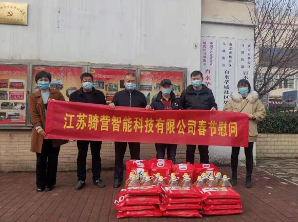 臨近年關(guān),愛(ài)心企業(yè)南京騎營(yíng)智能科技有限公司聯(lián)合馬群物業(yè)公司于2021年1月27日上午,向南京市棲霞區(qū)馬群街道百水芊城社區(qū)捐贈(zèng)了一批大米、食用油等生活物資,向幫助轄區(qū)部分困難家庭送去春節(jié)的問(wèn)候。