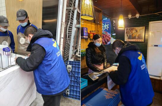 在登記冷鏈人員的同時,“九小場所”也是社區(qū)防控的關(guān)鍵一環(huán)。網(wǎng)格員對商業(yè)街“九小場所”進行安全檢查,檢查店鋪內(nèi)每日兩次消殺、體溫監(jiān)測、店內(nèi)是否按照防疫要求營業(yè);安排巡查志愿者在早高峰期對進店居民進行防疫宣傳,避免出現(xiàn)聚集。做到與商鋪零距離溝通交流,及時作出糾正和指導,把好商鋪防疫安全關(guān),牢筑嚴密防線。通過檢查“九小場所”,帶動社區(qū)居民加強疫情防范意識,嚴防疫情鉆空子,把“不放松”貫穿于社區(qū)疫情防控工作的始終。