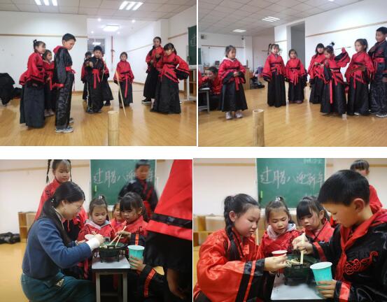 臘八節(jié)快到了,春節(jié)也要來(lái)了,歲末冬寒,用歡樂(lè)迎接新年,以美好抵御寒冬。穿漢服、誦讀三字經(jīng)、投壺、夾銅錢等一系列的傳統(tǒng)文化體驗(yàn)活動(dòng),讓孩子們置身其中,在了解傳統(tǒng)習(xí)俗的同時(shí),收獲別樣的歡樂(lè)。窗外的寒冬有冷風(fēng),屋內(nèi)卻有如春的風(fēng)景,在這短暫的童年時(shí)光里,盡情的享受著屬于他們的歡樂(lè),即使是苦惱也表現(xiàn)的如此痛快淋漓,沉浸在一場(chǎng)比賽、一次投壺、一次挑戰(zhàn),專注于每一次的欣喜若狂與失誤沮喪。