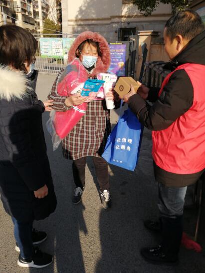近日天氣寒冷,垃圾分類指導員們?nèi)匀粓允卦邳c位上,引導居民正確投放垃圾,維護周邊環(huán)境。金堯花園社區(qū)老黨員、全科社工與城市志愿者一起,將防寒大衣、加絨手套等防寒用品和消毒液、口罩等防疫物資送到每個指導員手中,為他們送去關(guān)心和慰問,并叮囑他們做好保暖和防疫工作,注意自己的身體健康。韓翠芳是社區(qū)銀河灣卓苑小區(qū)的垃圾分類指導員,為了支持垃圾分類工作,她主動報名成為小區(qū)垃圾分類指導員,她臉上洋溢著笑容說:“這幾天降溫了,特別是早晨和晚上的風颼颼的冷,但是大家參與垃圾分類的熱情不減,感謝社區(qū)的關(guān)心,讓我們更有干勁。”