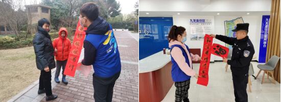 貼福字、貼窗花是中華民族的傳統(tǒng)文化,突顯了年味、民味,是迎接新年不可或缺的一道風(fēng)景。走訪中,網(wǎng)格員為居民送上一張張平安福字,并向群眾廣泛征求對(duì)社區(qū)疫情防控的意見建議,提高大家參與疫情防控的積極性。居民們手里拿著網(wǎng)格員送來的大紅福字,臉上洋溢著掩飾不住的喜悅。一個(gè)個(gè)福字在居民們笑臉的照耀下顯得熠熠生輝,預(yù)示著新一年的幸福生活。社區(qū)老人陳奶奶接過網(wǎng)格員送來的“福”字,臉上洋溢著喜悅,激動(dòng)地說:“感謝社區(qū)給我送‘福’,讓我感受到了生活的幸福。”
