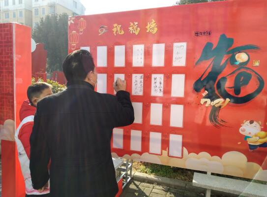 新銅社區(qū)便民服務(wù)中心一直秉承為民服務(wù)的宗旨,為群眾辦實事辦好事。紅紅火火的春聯(lián)代表著心與心交流的黨群關(guān)系;代表著居民對美好生活的愿望和希望,志愿者們揮筆落字,句句上下聯(lián)包涵了對居民美好祝愿和新年的祝福,大家在做好防護措施的基礎(chǔ)上自覺間隔一米,有序等待寫好的春聯(lián)???旁邊還有一處是送福袋的環(huán)節(jié)。原來社區(qū)黨委在學習強國中選取積分前十名的黨員同志,以他們的姓名送上福袋。為民服務(wù)的他們把自己的學習精神或能夠為民辦事的能力全部用一句話或一件事的形式展現(xiàn)在居民面前,拿走一個福袋就會呈現(xiàn)他們的介紹,居民們仔細閱讀著,臨別時都會在服務(wù)中心的祝福墻上寫下了自己對祖國、社區(qū)、家庭及親人們的美好祝福!
