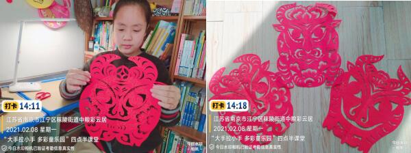 一份簡(jiǎn)單的底稿、一張紅紅的宣紙、一支小小的剪刀,小朋友們根據(jù)志愿者所發(fā)放的材料、視頻講解、溫馨提示等內(nèi)容將傳統(tǒng)剪紙藝術(shù)與牛年新春相結(jié)合,完成剪紙作品。隨后,志愿者通過剪紙知識(shí)小問答,讓孩子們了解到剪紙以紙張、金銀箔、樹葉、皮革等為載體,運(yùn)用剪、刻、撕的手法進(jìn)行創(chuàng)作。孩子們逐一分享其剪紙成品與感受。“一些看似簡(jiǎn)單的東西需要付出很多的耐心與細(xì)心。”正如日常的洗手、戴口罩一樣,看似細(xì)微簡(jiǎn)單,也需要我們?nèi)谌氲饺粘I钪?,繼續(xù)堅(jiān)持,才能有效防止疫情的擴(kuò)散。“最大的心得就是可以靜心,最近心情浮躁,剪紙的時(shí)候,讓心情得以放松。”一位小朋友笑著說道。“宅”生活,不免讓人感覺到煩躁,但也需要在乏味的生活中尋找樂趣。