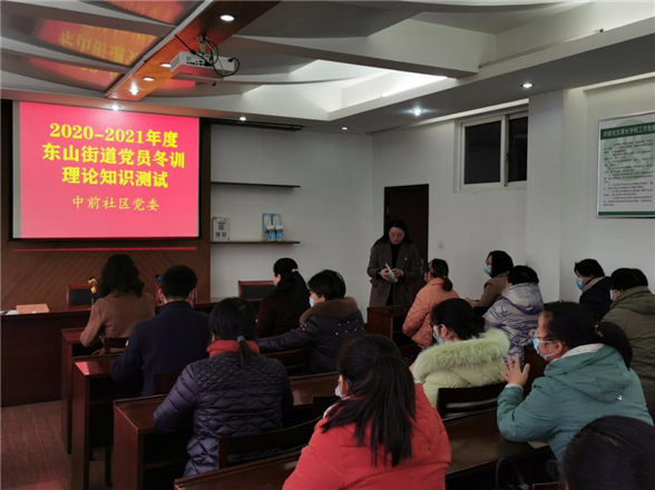 黨員冬訓(xùn)是廣大基層黨員每年的“必修課”,也是黨員學(xué)習(xí)的重要組成部分。自2020—2021年度基層黨員冬訓(xùn)工作啟動(dòng)以來,南京市江寧區(qū)東山街道中前社區(qū)因時(shí)制宜,于2021年1月上旬就開始步入冬訓(xùn)軌道,開展“用料十足”的冬訓(xùn)教育培訓(xùn)活動(dòng),讓黨的理論“飛入尋常百姓家”,確保黨員冬訓(xùn)見實(shí)效、有成效。