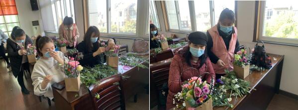 中前社區(qū):陽(yáng)春三月巧手插鮮花 桃花盛開(kāi)扮靚女神節(jié)