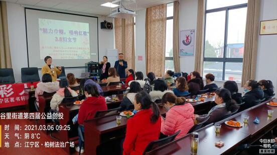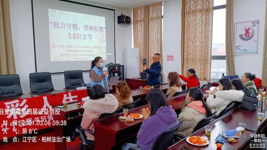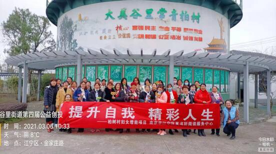 為紀(jì)念第111個“三八”國際婦女節(jié),營造節(jié)日氛圍,體現(xiàn)社區(qū)對女性居民的尊重,培養(yǎng)婦女的自我展示能力,結(jié)合今年建黨100周年,、柏樹村新時代文明實(shí)踐站、谷里街道柏樹村婦聯(lián)南京市江寧區(qū)茗書軒閱讀服務(wù)中心,于2021年3月6日上午開展了“魅力巾幗 唱響紅歌”3.8婦女齊歡樂活動。