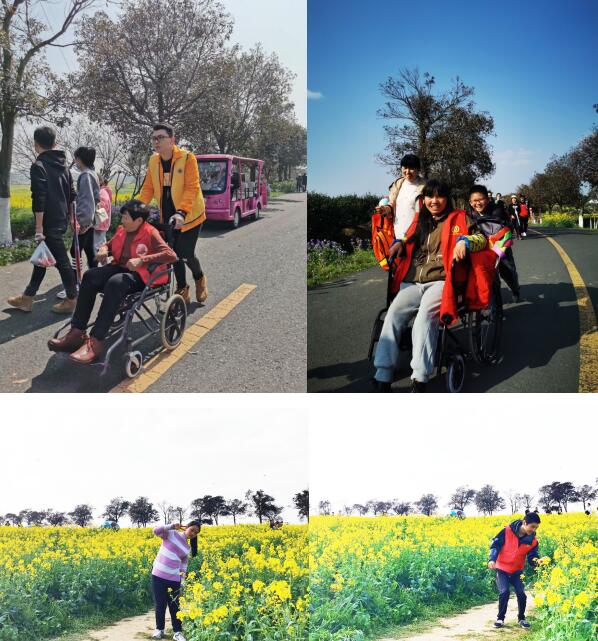 早上8點(diǎn)半,殘疾人們坐上了前往高淳椏溪慢城的大巴,也許是想著馬上就要出去玩,每一個(gè)人都熱情滿滿,在獅子聯(lián)會(huì)志愿者的主持下,每個(gè)人都拿出了自己的拿手才藝,并一一展現(xiàn)。歡聲笑語(yǔ)下,殘疾人們到達(dá)了目的地,志愿者和機(jī)構(gòu)老師有序組織了孩子們下了車,并組織孩子們手牽手,排好隊(duì),跟著標(biāo)有君子殘疾人之家的大旗走,并囑咐其千萬(wàn)不要亂跑,安全到達(dá)目的地。一路上中獅聯(lián)江蘇致遠(yuǎn)服務(wù)隊(duì)志愿者們用心服務(wù)著特殊孩子們,推輪椅、遞水、擦汗、陪同賞花拍照,一刻不閑。