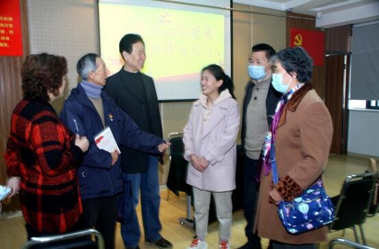初春三月,春雨霏霏。南京市秦淮區(qū)洪武路街道火瓦巷社區(qū)黨員活動室內,溫暖如春,春意融融,社區(qū)里黨員干部聚精會神地聆聽轄區(qū)內老黨員83歲56年黨齡企業(yè)退休郭益君、73歲原退役軍人55年黨齡李德貴兩位老黨員,給大家生動地講述自己守初心,家國情懷,用切身經歷講述當初入黨故事和時代背景。社區(qū)邀請區(qū)政府干部張靜同志精彩地講述著“從反圍剿看共產黨如何在危難中的取得勝利”的情形,帶領大家深深感悟到黨的輝煌歷史,重溫百年黨史,學習黨史、牢記黨史。